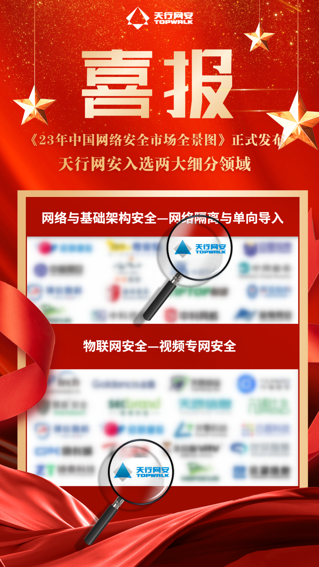 据悉2023年全景图,涵盖了产品、解决方案、应用场景、服务4个维度,覆盖了目前我国网络安全行业所有成熟的细分市场,收录热点品牌共计1318项,甄选出406家国内优秀的网络安全企业。天行网安在网络隔离与单向导入和视频专网安全两大细分领域持续保持技术领先优势上榜全景图!