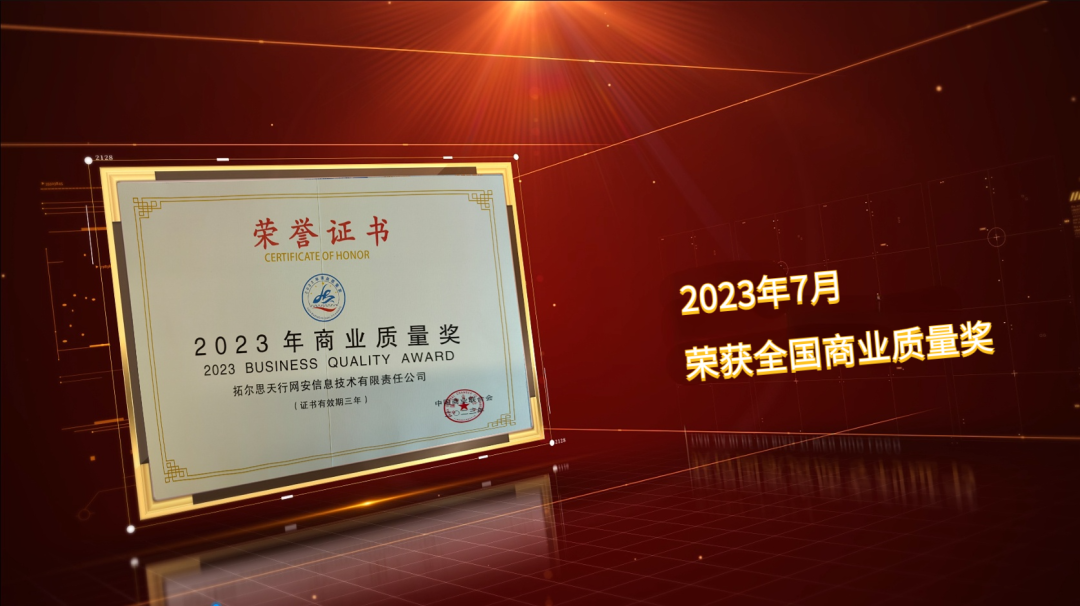 7月30日,由中国商业联合会主办的2023年全国商业科技质量大会在北京召开。会议聚焦商业科技创新和高质量发展,天行网安凭借多年的“创新发展和匠心精神”荣获“2023年全国商业质量奖”。