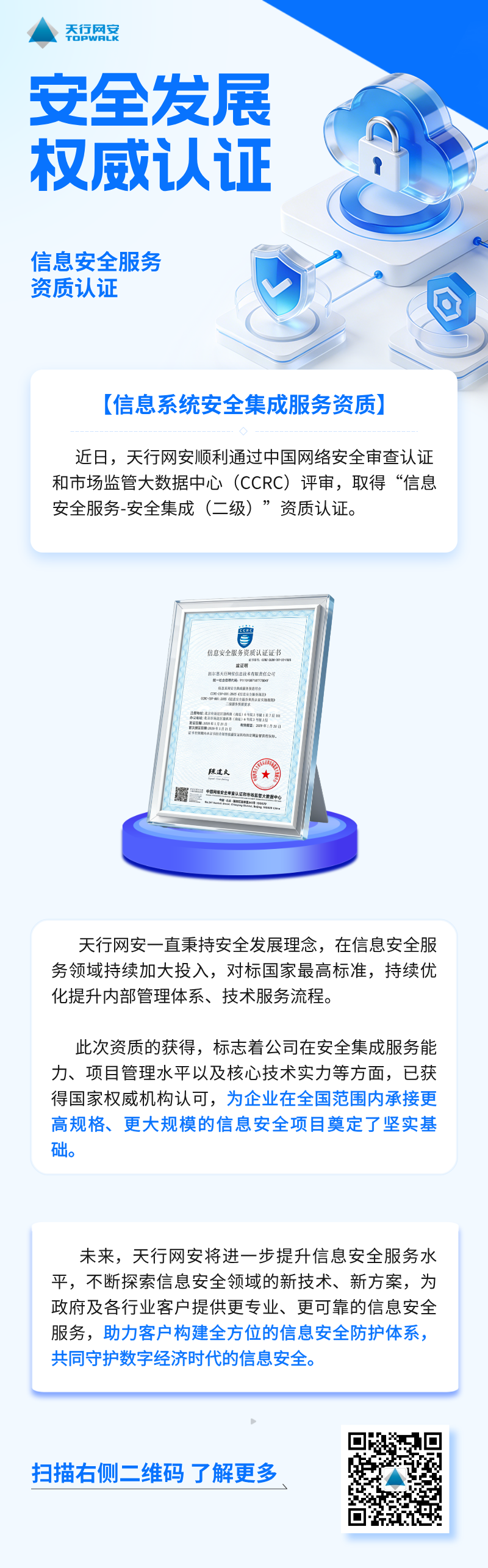 权威认证|天行网安再次通过信息安全服务资质CCRC认证