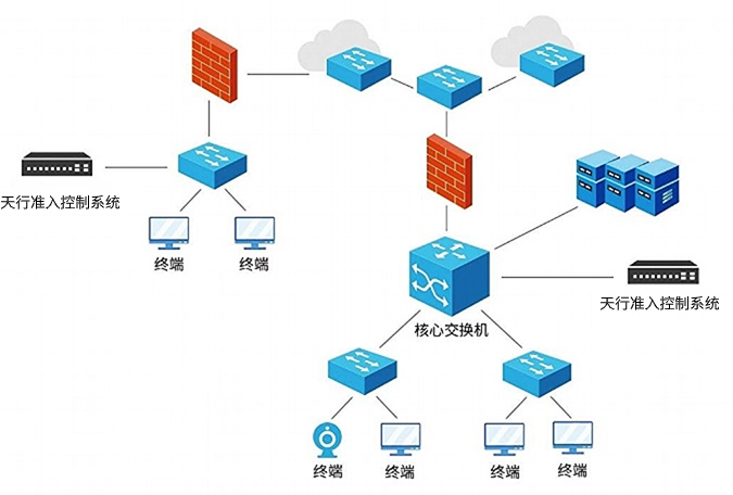 横向边界安全交互:天行准入控制系统可应用于互联网/其他专网和视频专网的横向边界安全交互场景。