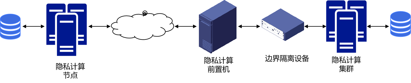 参与方各自在本地部署一套对等的环境,在各自安全域中完成计算,同时保证交互数据不存在信息泄露。